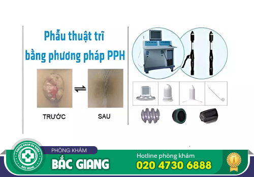 ► Điều trị bằng phương pháp PPH: Phương pháp được chỉ định trong các trường hợp trĩ nội độ 2, 3, 4. Nguyên lý hoạt động đó là sử dụng máy PPH chuyên dụng đưa vào ống hậu môn để thắt bỏ các búi trĩ phía trên đường lược. Đồng thời khâu niêm mạc tạo hình lại hậu môn phía ngoài. Phương pháp này không dùng bất kỳ dao kéo nào trong quá trình thực hiện nên hạn chế cảm giác đau đớn.