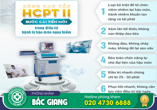 ► Điều trị bằng phương pháp HCPT: Phương pháp HCPT được chỉ định điều trị cho các trường hợp bị trĩ ngoại cấp độ 2, 3 và 4. Nguyên lý hoạt động của HCPT đó là sử dụng sóng điện từ cao tần giúp loại bỏ các tổ chức lớp dưới của niêm mạc. Đồng thời, hỗ trợ khống chế nhiệt độ tốt, không làm phá hủy nhiều tế bào. Qua đó, giúp các búi trĩ được loại bỏ hiệu quả và nhanh chóng hồi phục vết thương.