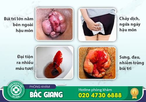 Sa búi trĩ: Sa búi trĩ xuất hiện ngay từ giai đoạn đầu của bệnh nhân mắc trĩ ngoại, gây ra cảm giác đau và chướng. Đối với bệnh nhân mắc trĩ nội, sa búi trĩ chỉ xuất hiện khi bệnh trĩ ở giai đoạn thứ hai.